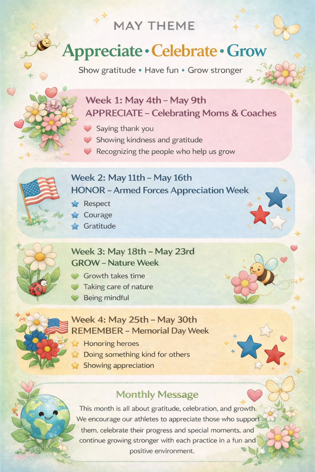 Action News & Event Calendar APRIL WEEKLY REC THEMES REFER A FRIEND! 2026 END OF YEAR SHOWCASE ACTION GYMNASTICS EVENT CALENDAR EVENT CALENDAR